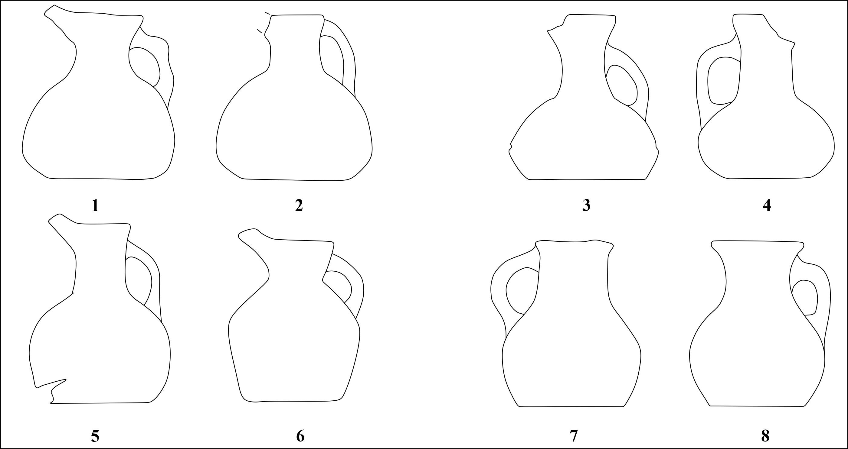 | 9. | Fig. 9. An example of different jars shape traditions (without scale). 1, 2, 5, 6 – traditions of the first group, 3, 4, 7, 8 – traditions of the second group. 1-4 - jugs with a "low" body, 5-8 – jugs with a "medium/low" body. 1, 2, 5, 6 – Dmitrievsky burial ground, 3 – Yutanovsky burial ground, 4, 7, 8 – Starosaltovsky burial ground | View (2MB) | Indexing metadata |