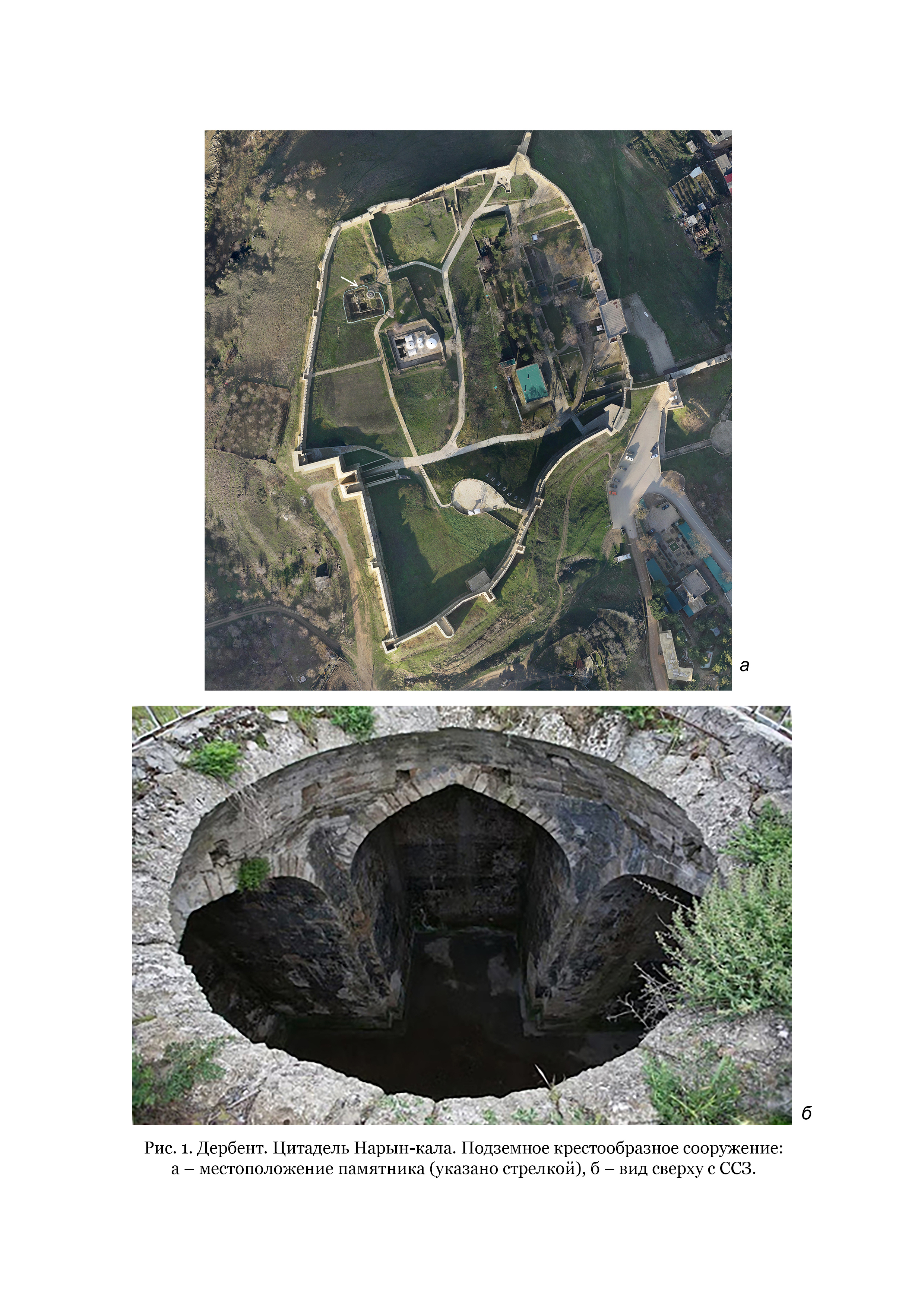 Среди архитектурных достопримечательностей г. Дербента заметное место занимает монументальное подземное крестообразное сооружение, расположенное в северо-западной части цитадели Нарын-кала (рис. 1). Оно состоит в государственном реестре под названием «Водохранилище крестообразное, XVI в.» под регистрационным номером 051510039650476 и входит в состав объекта культурного наследия федерального значения «Дербентская цитадель Нарын-кала». Памятник включен на государственную охрану Постановлением Совета Министров РСФСР «О дальнейшем улучшении дела охраны памятников культуры в РСФСР» № 1327 от 30.08.1960 г. и Приказом Министерства культуры РФ «О включении выявленных объектов культурного наследия в единый государственный реестр объектов культурного наследия (памятников истории и культуры) народов Российской Федерации в качестве объектов культурного наследия федерального значения в составе объекта культурного наследия федерального значения «Дербентская цитадель «Нарын-Кала» VI−XIX века (Республика Дагестан) и утверждении границ их территории» № 2721 от 03.11.2015 г.