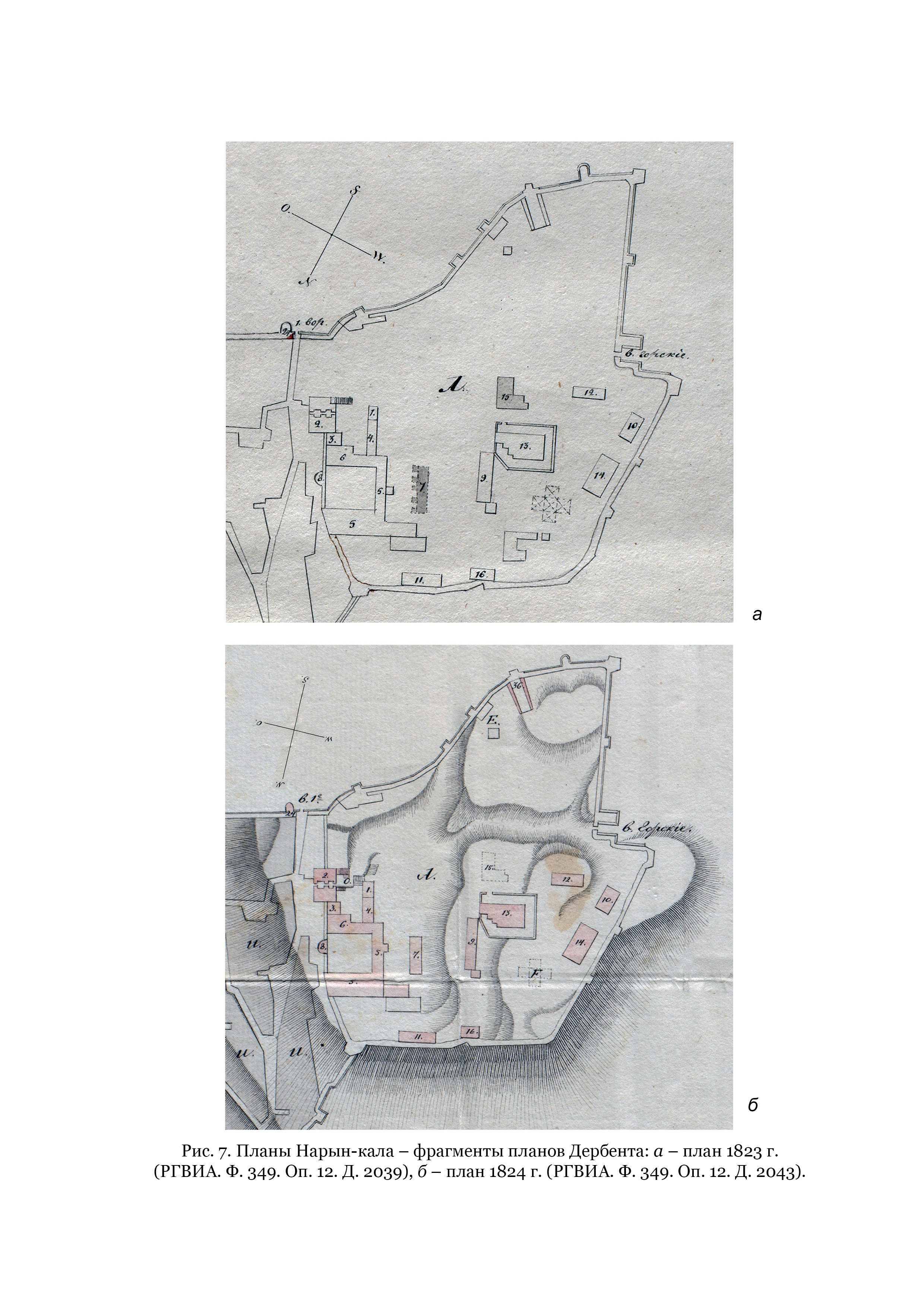| 7. | Fig. 7. Plans of Naryn-Kala – fragments of plans of Derbent: a – plan of 1823 (RGVIA. Collection 349. Inv. 12. File 2039), b – plan of 1824 (RGVIA. Collection 349. Inv. 12. File 2043) | View (4MB) | Indexing metadata |