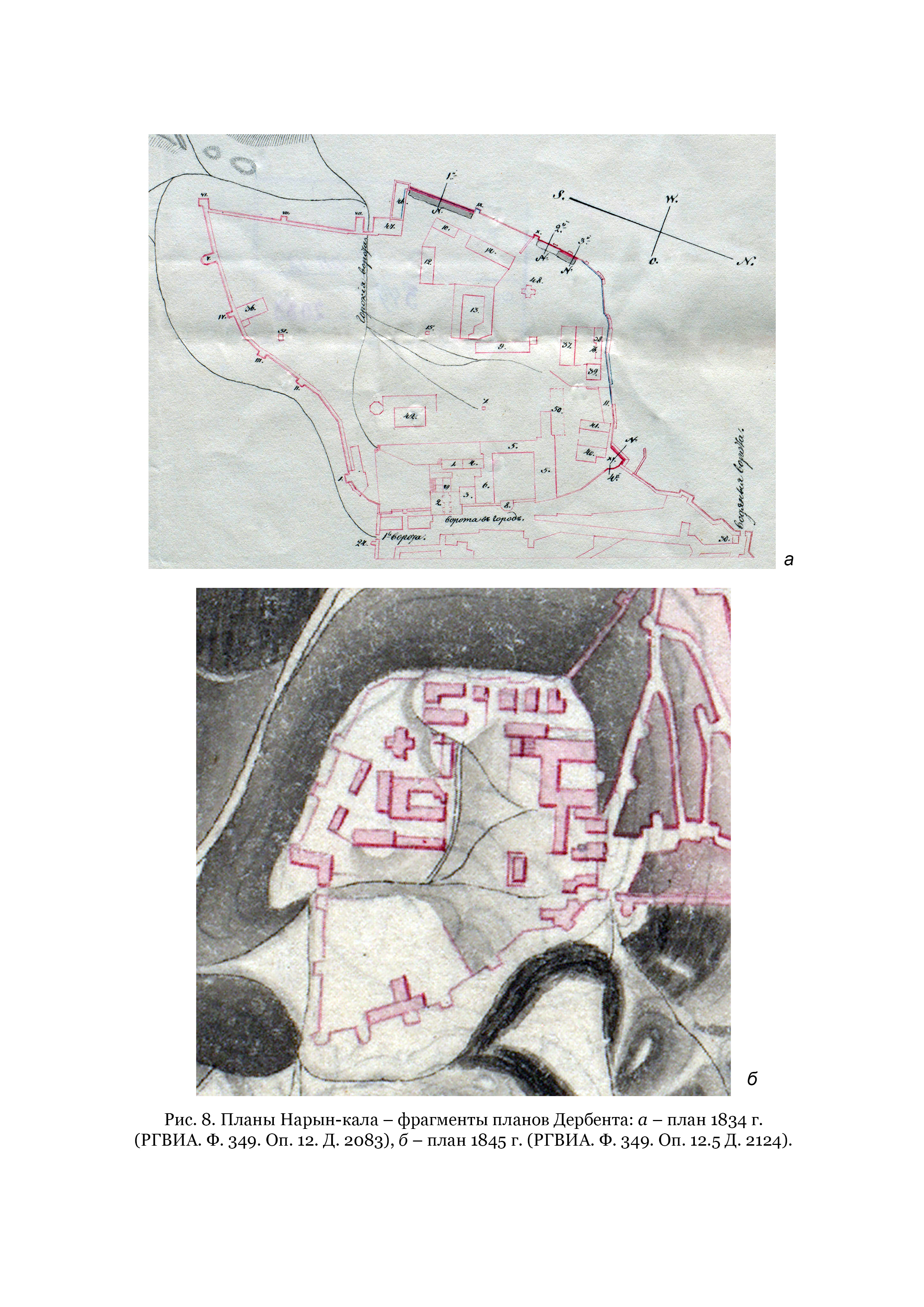 | 8. | Fig. 8. Plans of Naryn-Kala – fragments of plans of Derbent: a – plan of 1834 (RGVIA. Collection 349. Inv. 12. File 2083), b – plan of 1845 (RGVIA. Collection 349. Inv. 12.5. File 2124) | View (3MB) | Indexing metadata |