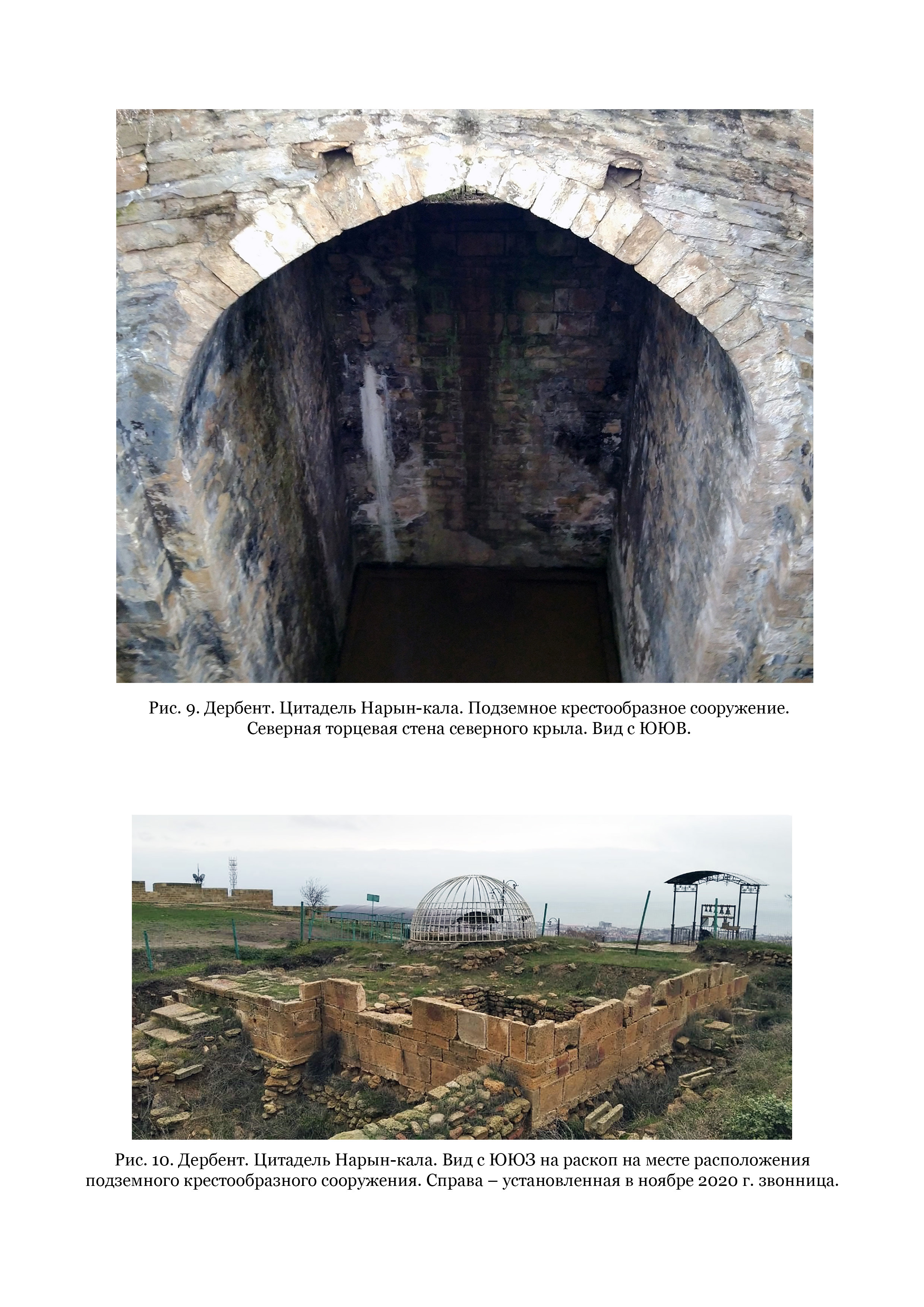 | 9. | Fig. 9. Derbent. Citadel of Naryn-Kala. An underground cruciform structure. North wall of the north wing. View from the SSE. Fig. 10. Derbent. Citadel of Naryn-Kala. View from SSW to the excavation site at the location of the underground cruciform structure. On the right is the belfry discovered in November 2020 | View (1MB) | Indexing metadata |