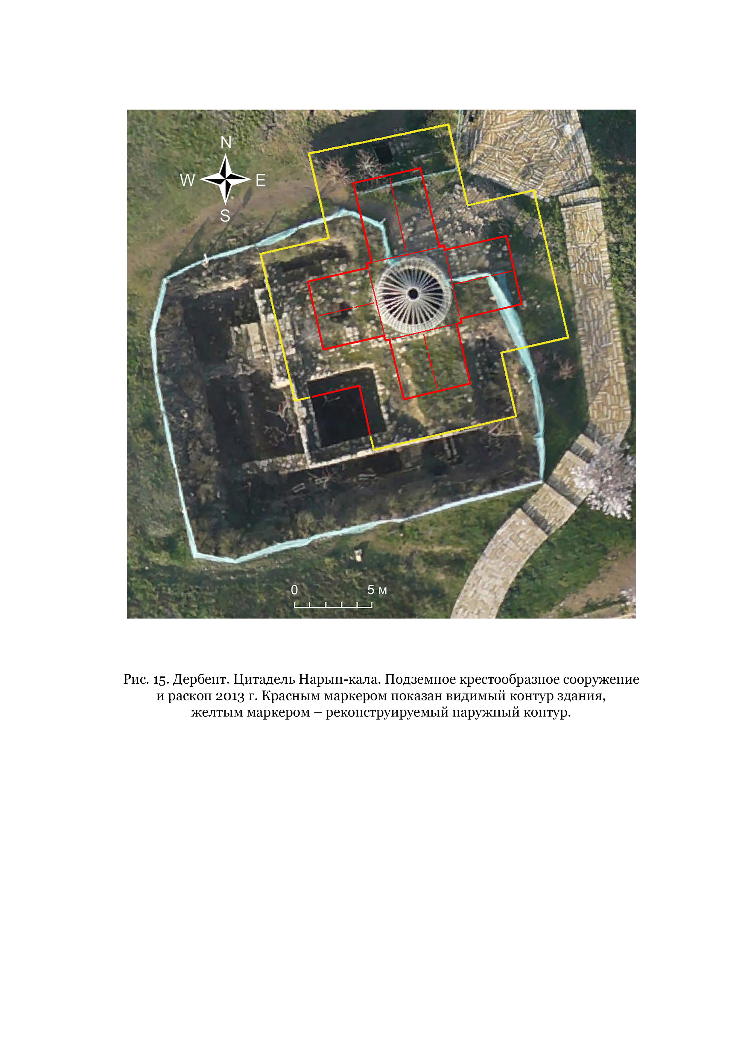 | 13. | Fig. 15. Derbent. Citadel of Naryn-Kala. An underground cruciform structure and excavation site of 2013. Red marker indicates the visible outline of the building, yellow marker – the reconstructed outer outline | View (2MB) | Indexing metadata |