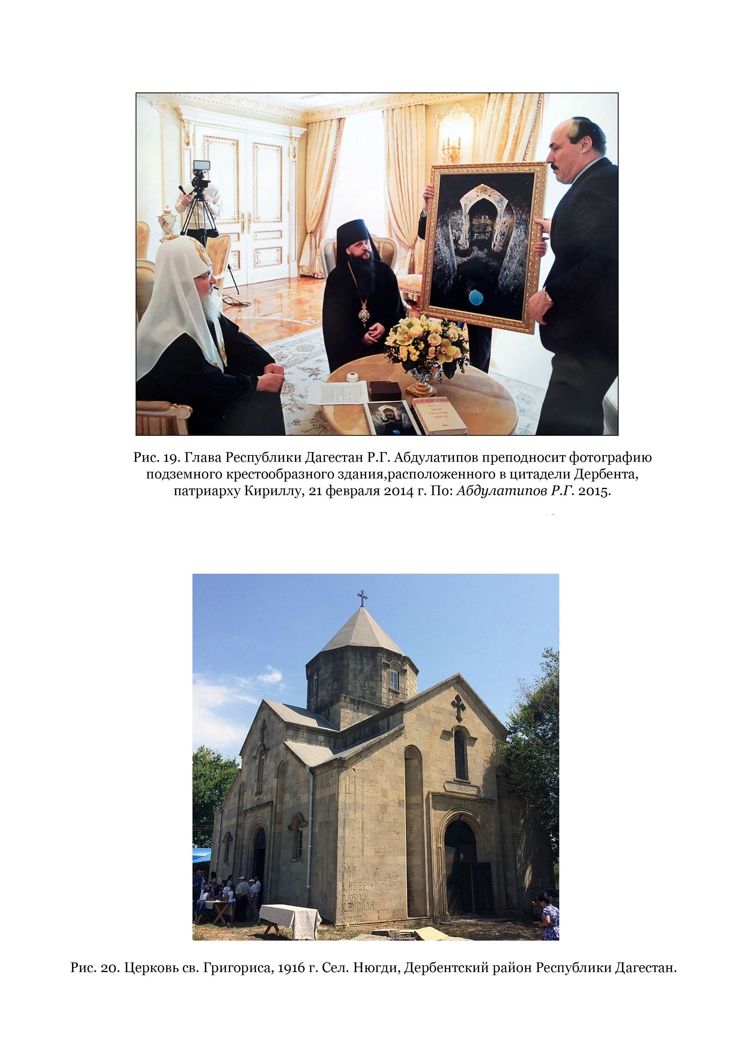 | 16. | Fig. 19. Head of the Republic of Dagestan R.G. Abdulatipov presents a photograph of an underground cruciform building located in the citadel of Derbent to Patriarch Kirill, February 21, 2014. According to: Abdulatipov R.G. 2015. Fig. 20. Church of St. Grigoris, 1916. Village of Nyugdi, Derbent region of the Republic of Dagestan | View (1MB) | Indexing metadata |