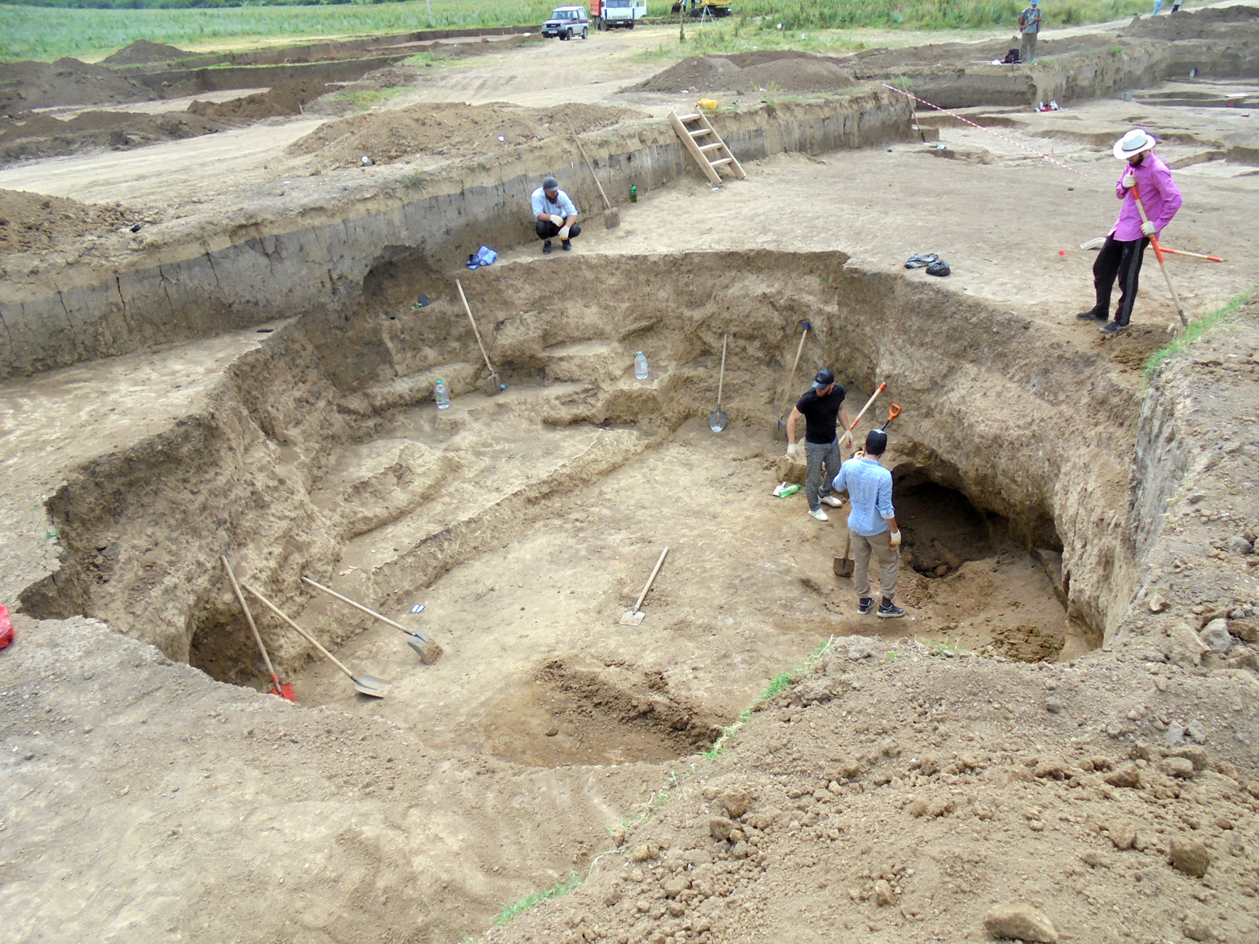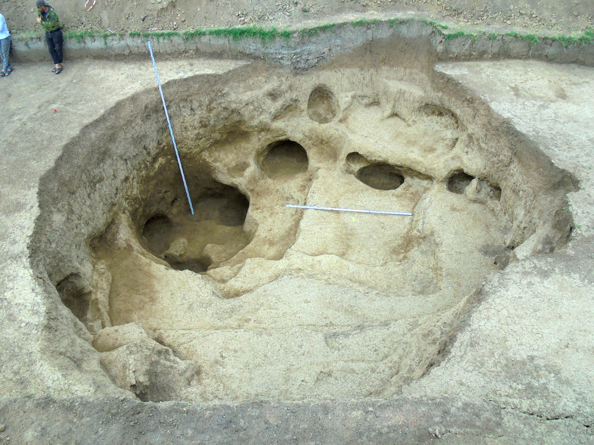 Также на исследованной территории находилось большое количество различных ям. Отличительной особенностью большинства из них являются неровные стенки с большим количеством ниш и подбоев и неровное дно, изрытое ямами меньших размеров. Эти ямы, скорее всего, были выкопаны для добычи глины.